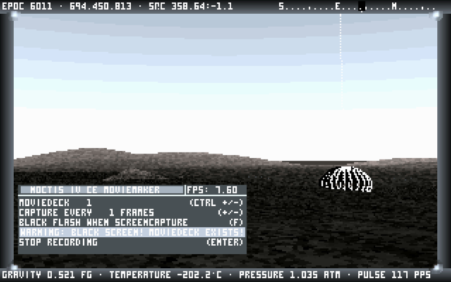 One of the new features added in release R9.25, is the ability for users to make a movie of their actions while they're on the surface. Surface only, as of now, but that might change someday. To access the Moviemaker, hit F4 while on the surface of a planet.